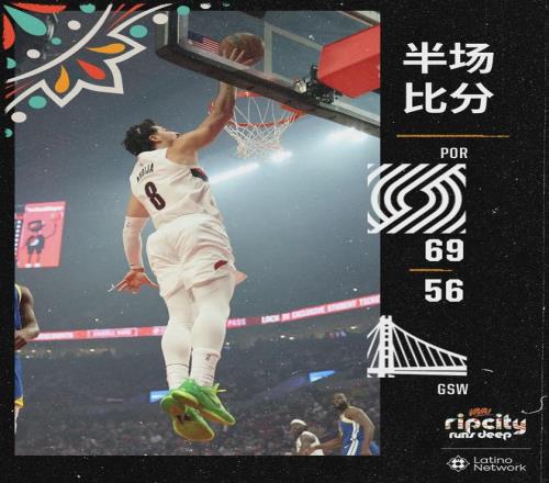 开拓者继续用五小,把分差拉开到两位数,杨瀚森第二节没能登场。半场战罢,开拓者69-56领先勇士13分。开拓者单节三分11中9,这谁顶得住?库里24分、库明加10分5板2断;阿夫迪亚20分、格兰特17分。勇士上半场13次助攻11次失误!