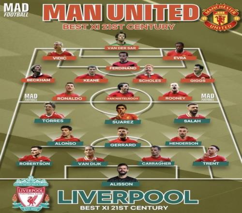 曼联利物浦21世纪最佳阵容发布!没争议吧!贝克汉姆萨拉赫入选