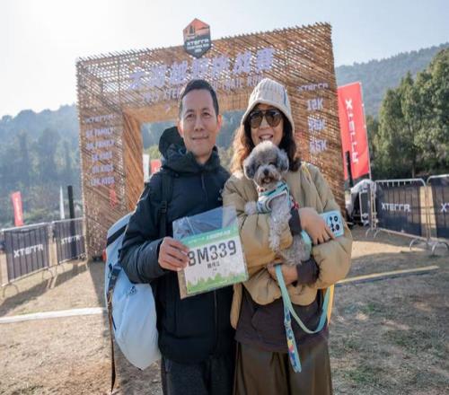 比赛当天,“兴奋”贯穿了吴轶涵整个赛程:既有首次尝试的跃跃欲试,也有对于后面风景的期待。尤其在穿过树林跑到山顶的大如意圣境,抬头看到阳光照射在观音像身上的那一刹那,让她只觉震撼与惊艳。除了一路的美景,吴轶涵还在赛中遇见了一件让她忍俊不禁的事——有一位带边牧参赛的男生,因为边牧跑得特别快,导致他一路上都在找狗,“有人看到一条狗吗?”