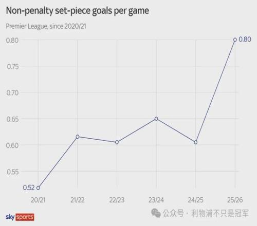 而放眼本赛季英超,场均定位球进球(不算点球),已经从此前四个赛季的0.6-0.65之间,激增到本赛季的0.8球。