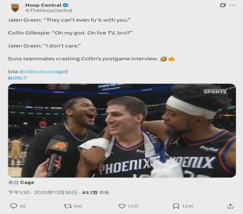 北京时间12月31日,NBA官方宣布:太阳后卫杰伦-格林在电视直播采访时使用不当言辞,被联盟罚款25000美元。事情是这样的:队友吉莱斯皮接受采访时,格林打断他并说道:“They can’t even f**k with you!”因为这次爆粗,格林被罚。