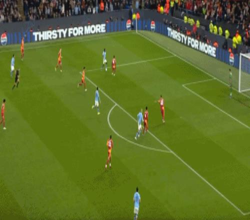 哈兰德没有让悬念继续,单刀破门打开局面,曼城1-0领先。