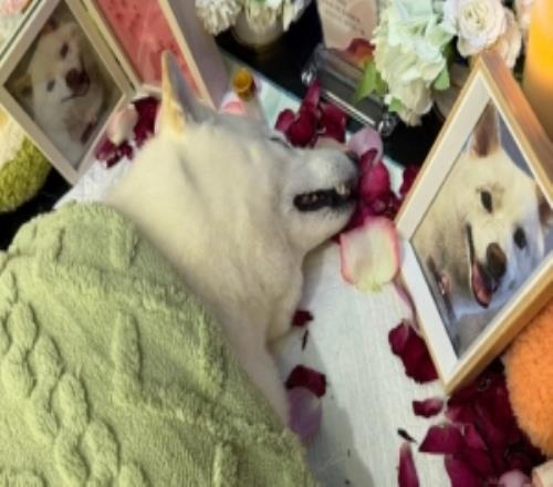 宠物狗倒了骆歆晒图:晚安斗宝下辈子一定给你买多多的零食 -